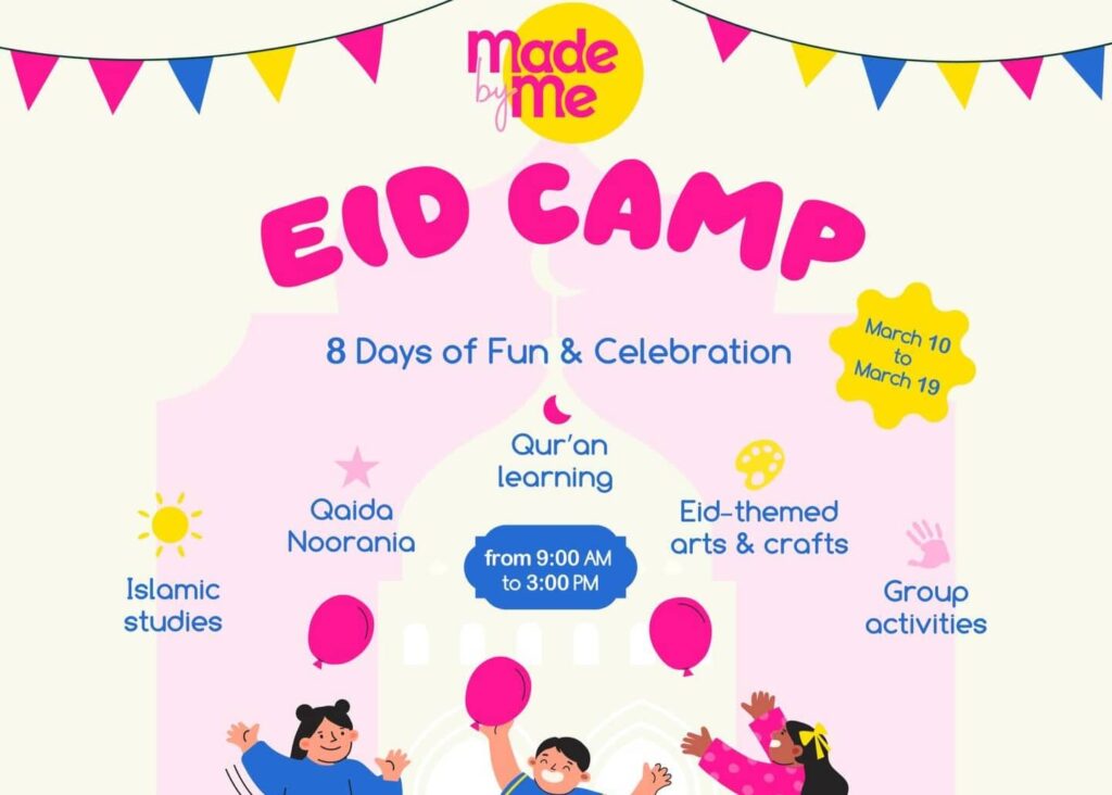 Eid Camp at Made by Me Studio is an 8-day celebration filled with Eid-themed crafts, joyful learning, and fun group activities. Designed for children ages 4–10