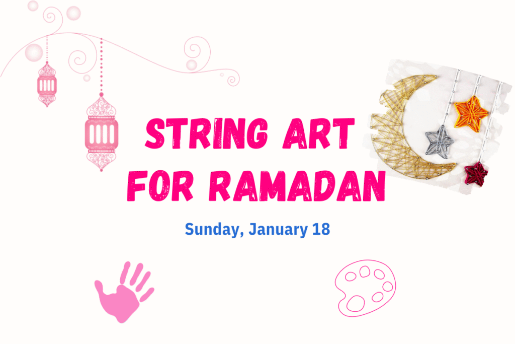 A cozy Ramadan string art workshop for girls ages 10+, featuring guided creativity, meaningful dΓ©cor making, and a warm, welcoming atmosphere